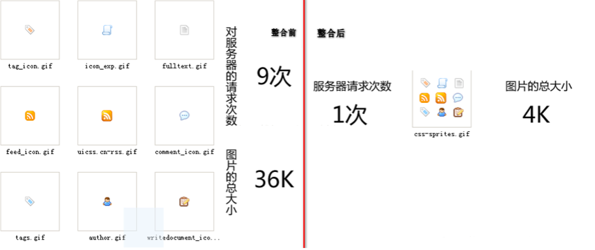 这种方式就是通过将多个小图片合并成一个大图片来减少 HTTP 请求的次数,以减少 HTTP 请求的次数,从而减少网络的开销。